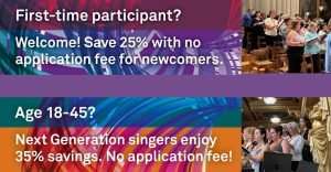 First time participants (individuals who have not yet attended a BCI program) are eligible for a Newcomer Discount of 25% off the standard tuition fee, along with waived application fees. Singers ages 18-45 are eligible for a Next Generation Discount of 35% off the standard tuition fee, along with waived application fees. Discounts cannot be combined; the greater discount applies.